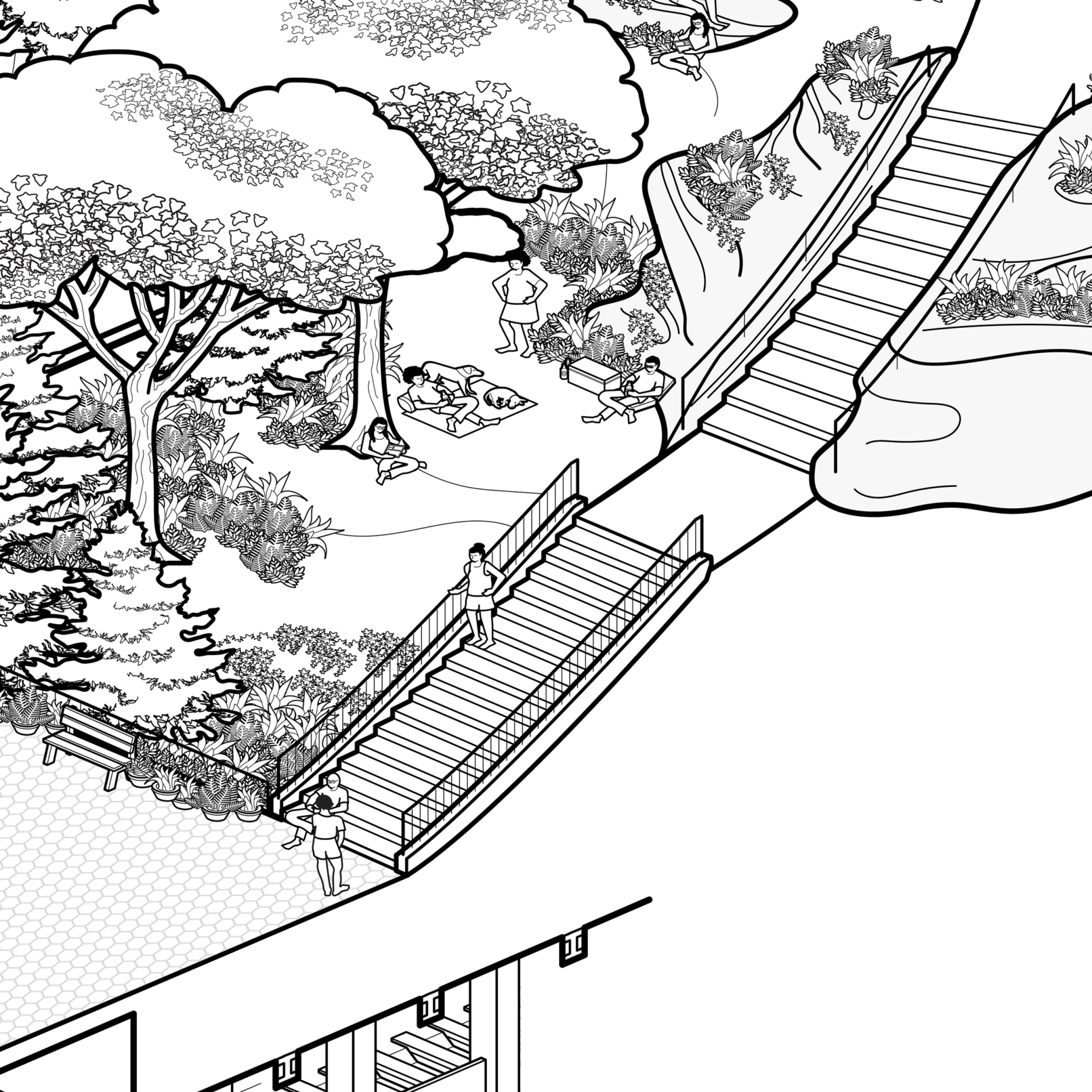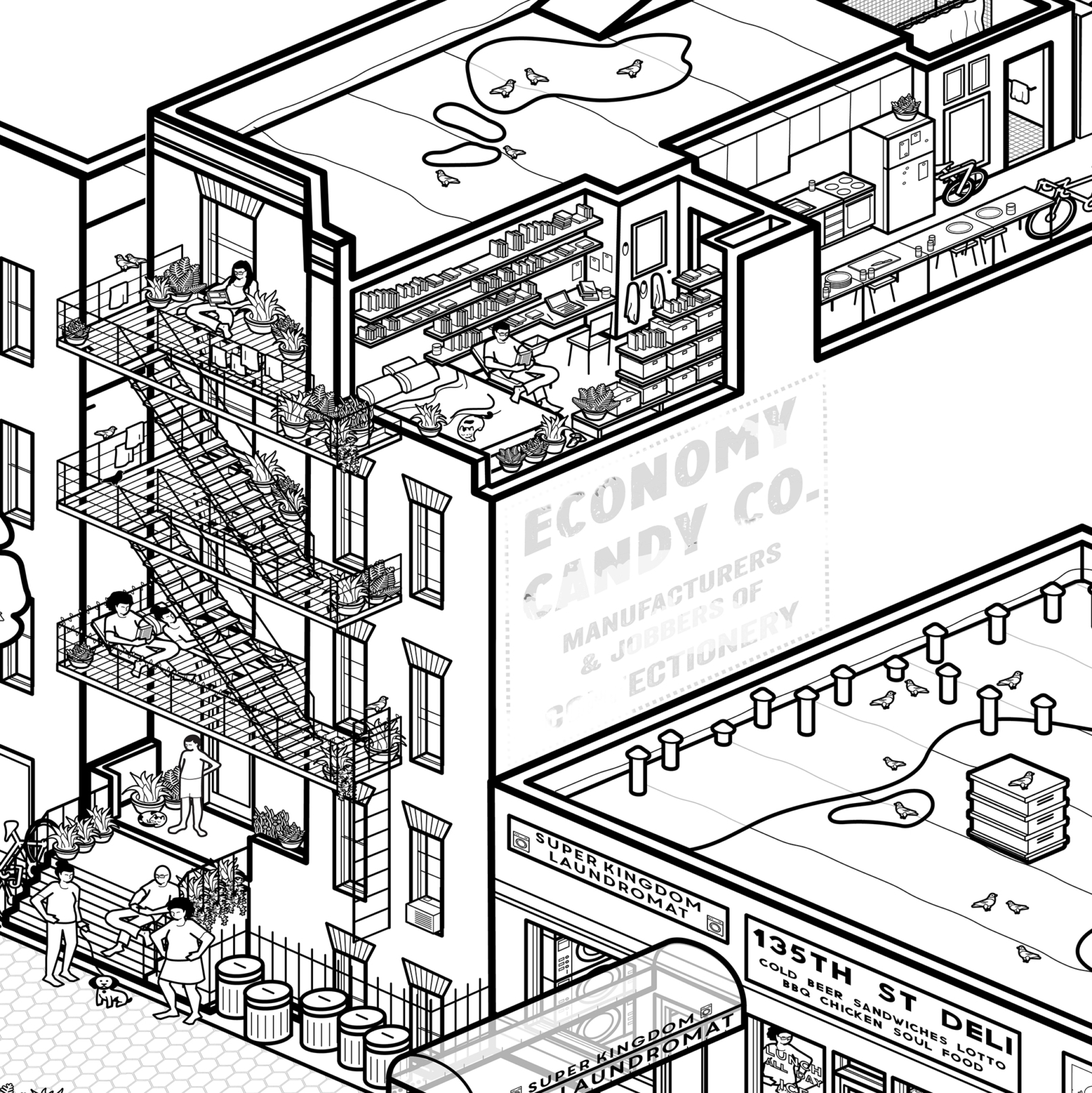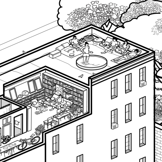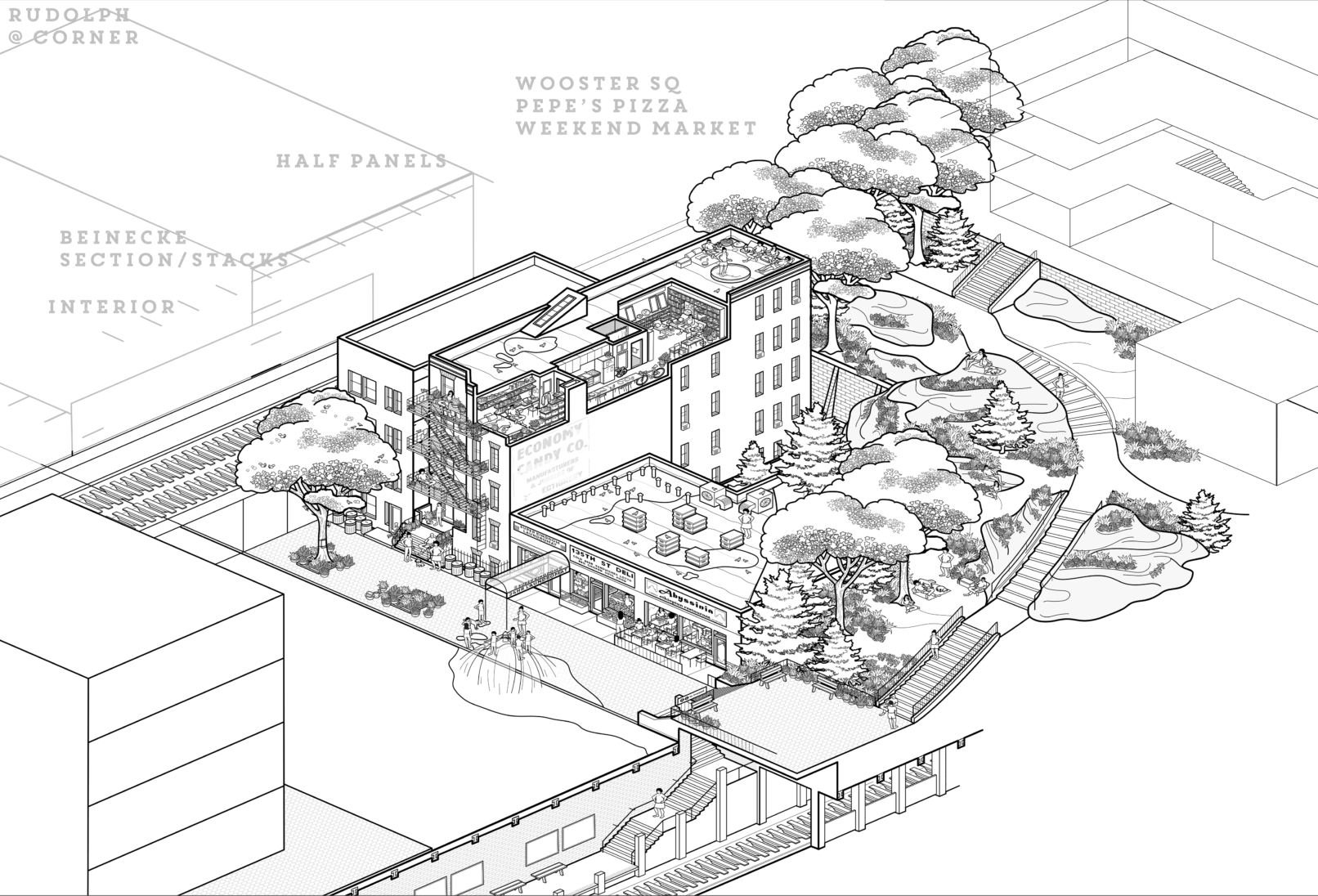 An axonometric condensation of our world in NYC and New Haven… with an indeterminate deadline for completion.