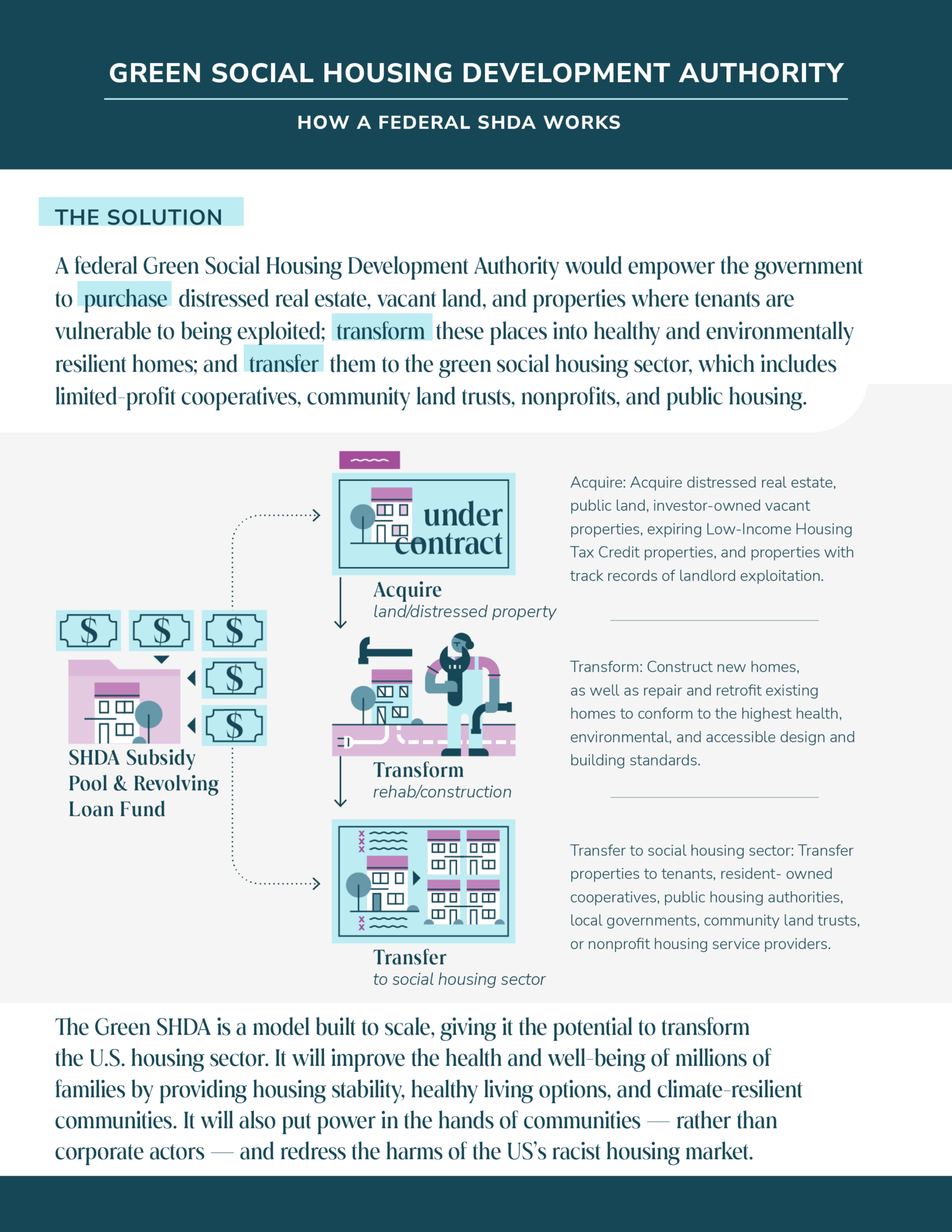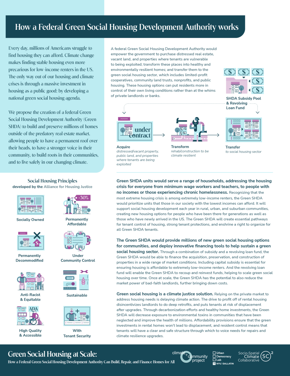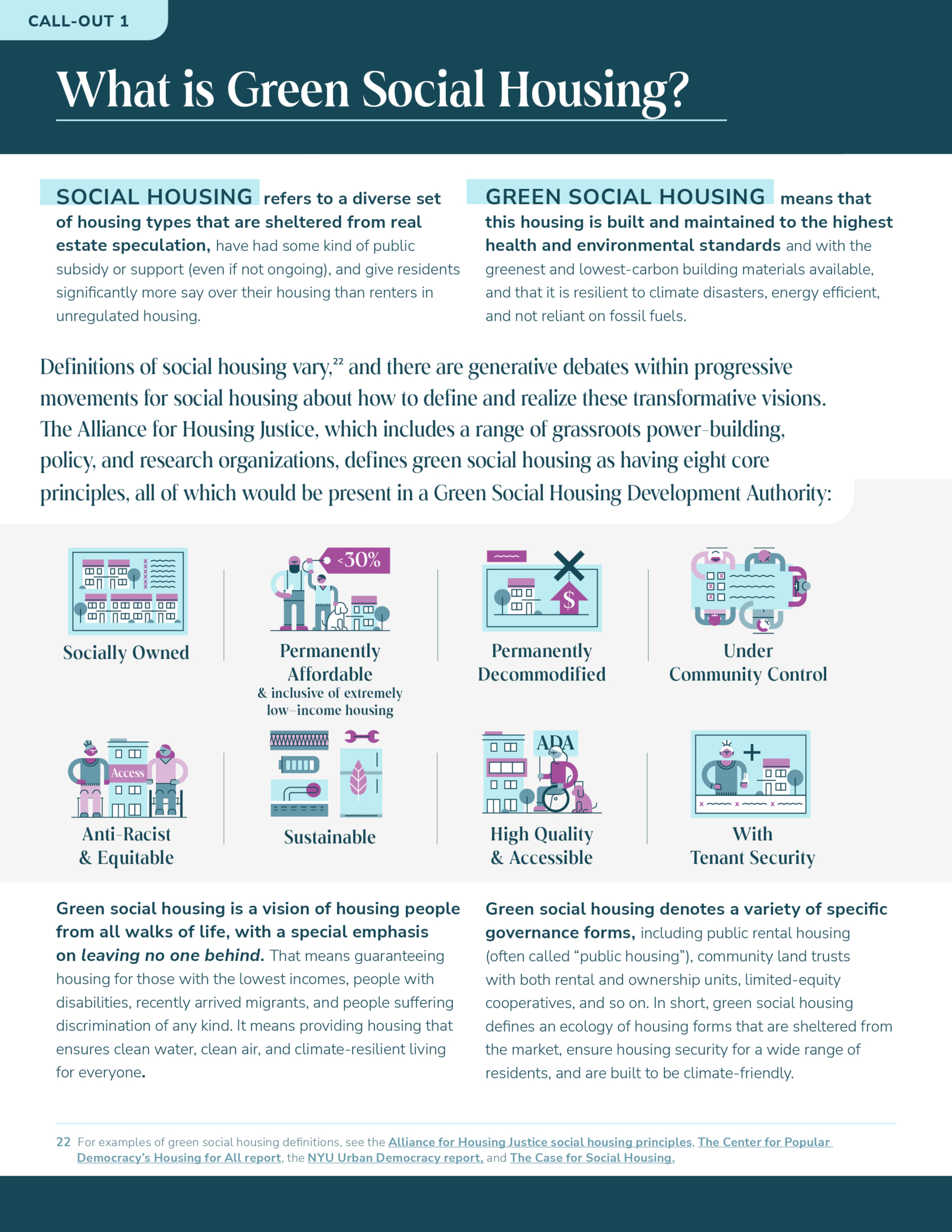 This briefing for housing advocates/organizers explores how a federal Green Social Housing Development Authority would empower the government to purchase distressed, reno/develop and transfer them to the green social housing sector, providing residents with more control of their own living conditions rather than at the whims of private landlords or banks. Working Ruthy Gourevitch (one of the authors), I develop the book layout, hybridizing CCP’s past publications and rebranding guidelines with a consistent illustration-icon system.