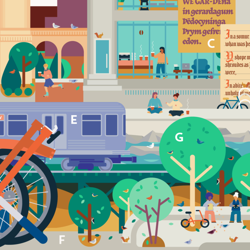 This holiday, hybrid-streetscape poster celebrates our various visits, activities, & hobbies of 2021 – from research & teaching to family visits, street skating, & bird watching – balancing the tensions of covid containment (vaxx, boosters, etc.) and urban exploration.