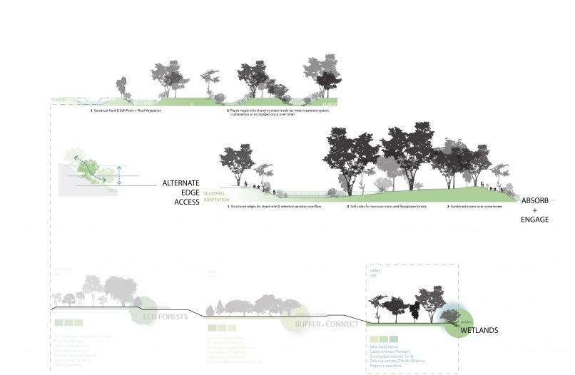 One of the things I really enjoy about landscape, infographics, and illustration is the opportunity to juxtapose different scales, systems, and senses activated by an experience. The following landscape ‘manifesto’ posters show variations on this layering of cartography, process diagrams, comparative sections, and tactile/immersive details done in my time as a landscape designer and educator.