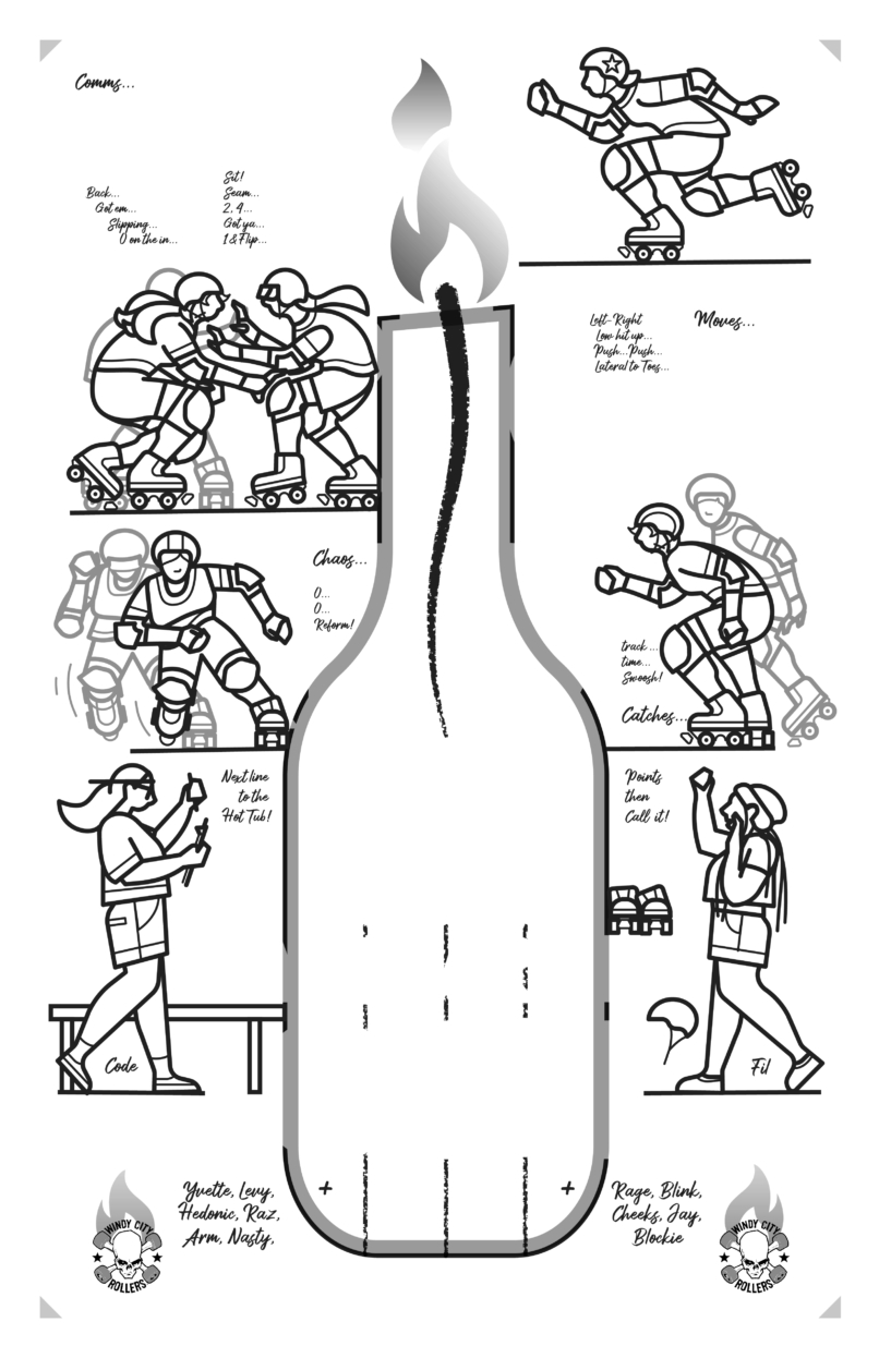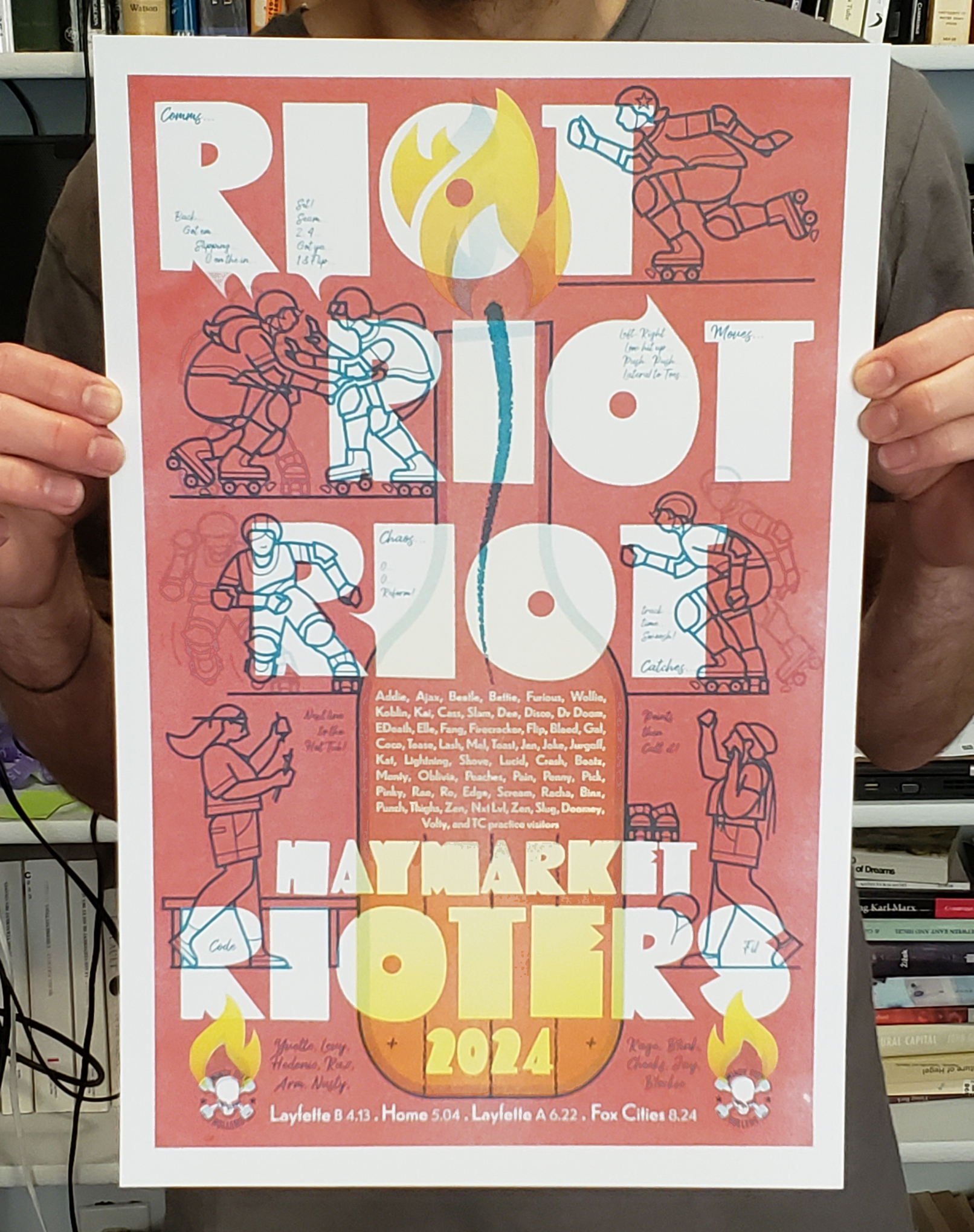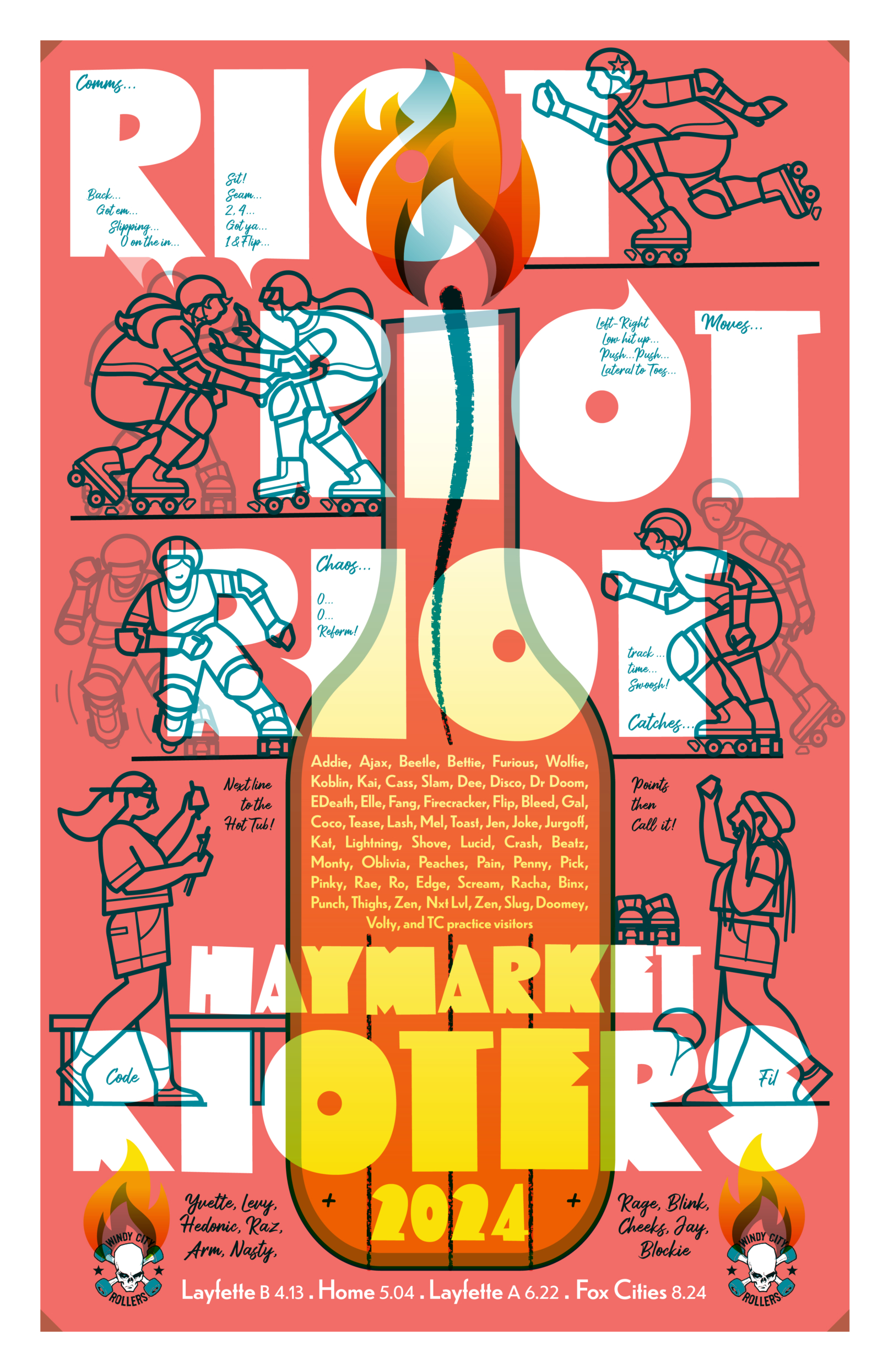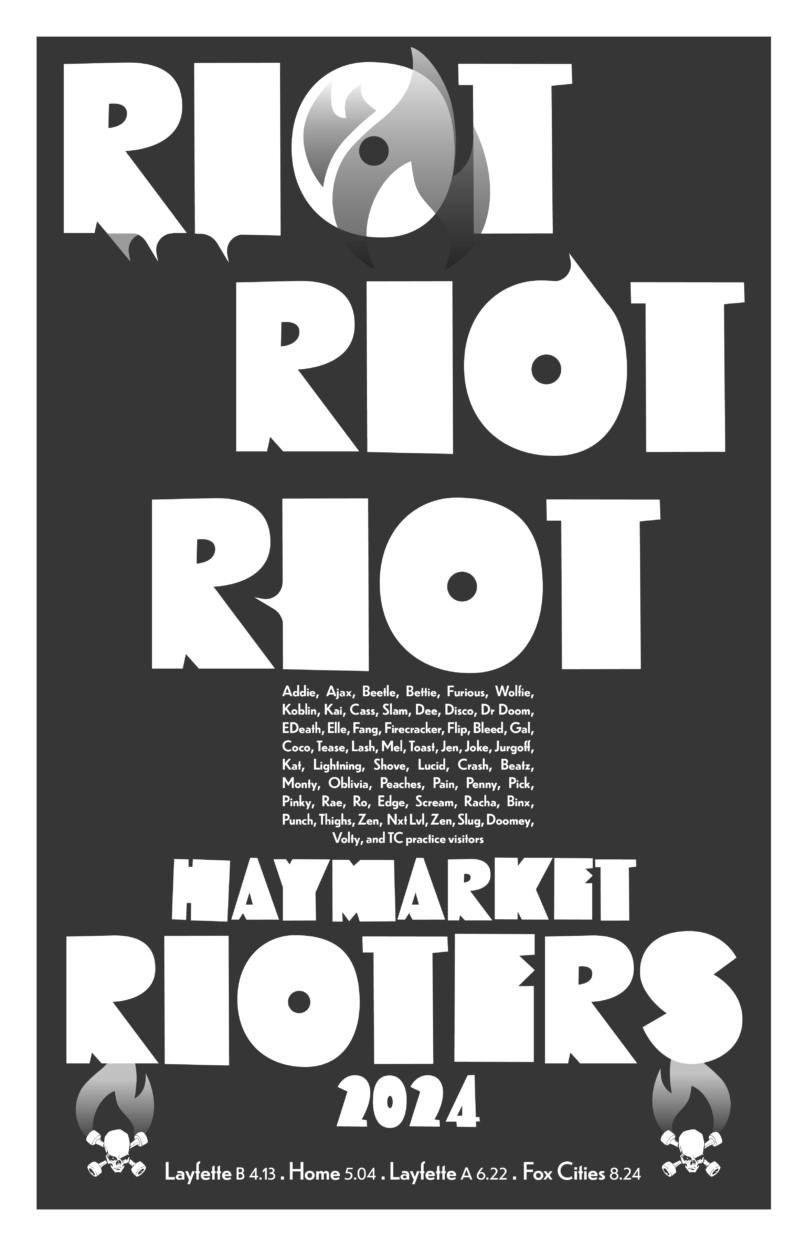 Hype poster made for Haymarket Rioters’ 2024 rec team season and distributed to coaches, captains, and fellow team members in Windy City Rollers.