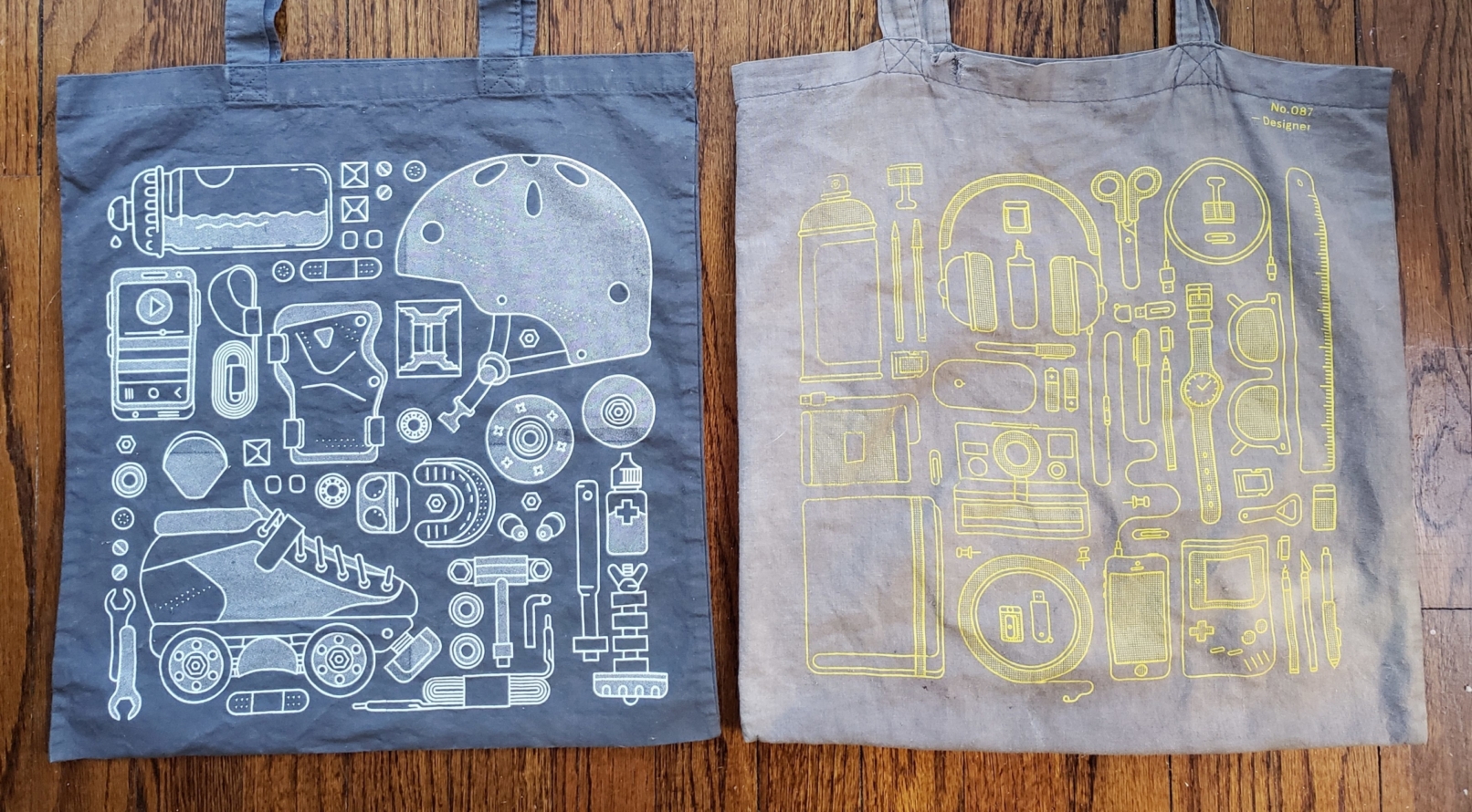 Inspired by my favorite tote from Things by Us, this series of skate bags is a fun way for me to channel hobby (or general life) enthusiasm and keep my screen-printing skills fresh!